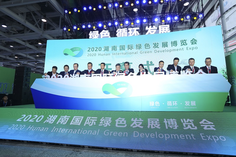 9月24日至26日,由中國國際貿易促進委員會湖南省分會、湖南省工業和信息化廳、湖南省生态環境廳、長沙市人民政府、中國物資再生協會共同主辦,以“綠色·循環·發展”爲主題的2020湖南國際綠色發展博覽會(以下簡稱綠博會)在湖南國際會展中心舉行。湖南鑫遠環境科技股份有限公司受邀參展,公司總經理郭麗麗出席開幕式。